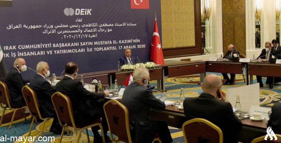 وقال المكتب الإعلامي لرئيس الوزراء في بيان تلقته وكالة الأنباء العراقية (واع)، إن "رئيس مجلس الوزراء، مصطفى الكاظمي، التقى اليوم الخميس، عدداً من رجال الأعمال والمستثمرين ورؤساء الشركات التركية، وذلك على هامش زيارته الرسمية للعاصمة التركية أنقرة، وبحث الطرفان سبل تسهيل إجراءات الاستثمار ورفع المعوّقات والتخفيف من الإجراءات البيروقراطية.