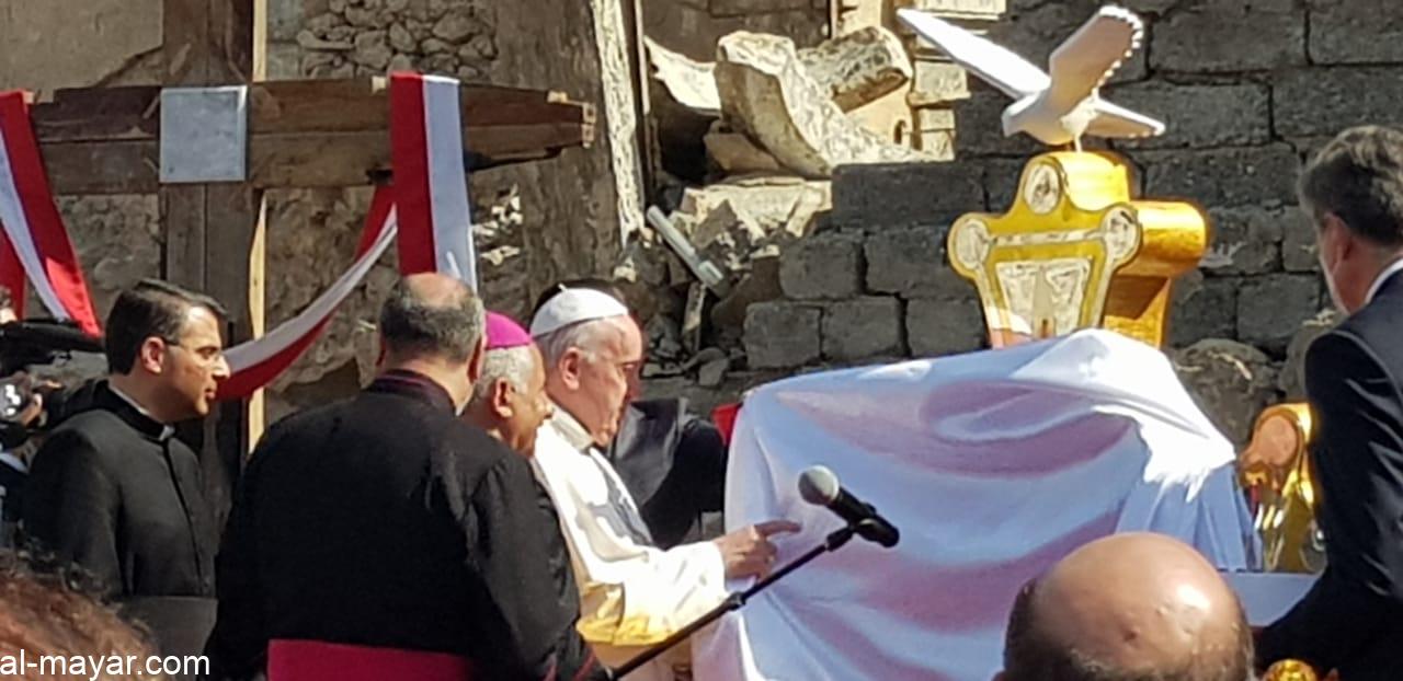 أهدى نحات موصلي مسلم بابا الفاتيكان صليبا خلال زيارة البابا الى المدينة.
