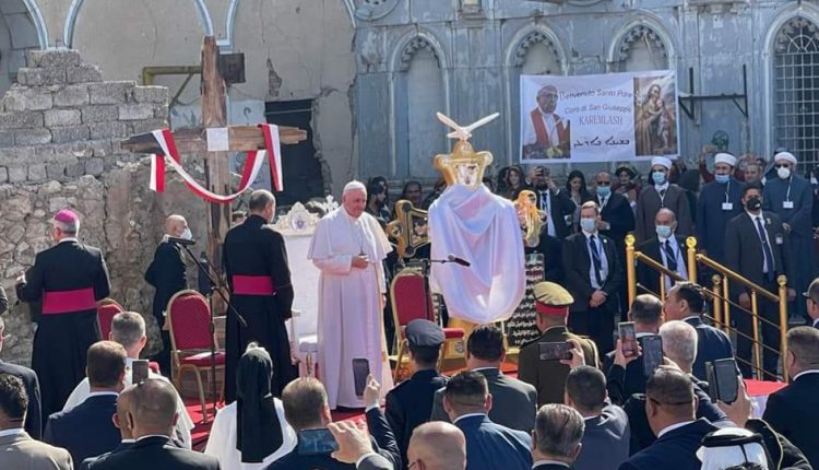 أهدى نحات موصلي مسلم بابا الفاتيكان صليبا خلال زيارة البابا الى المدينة.