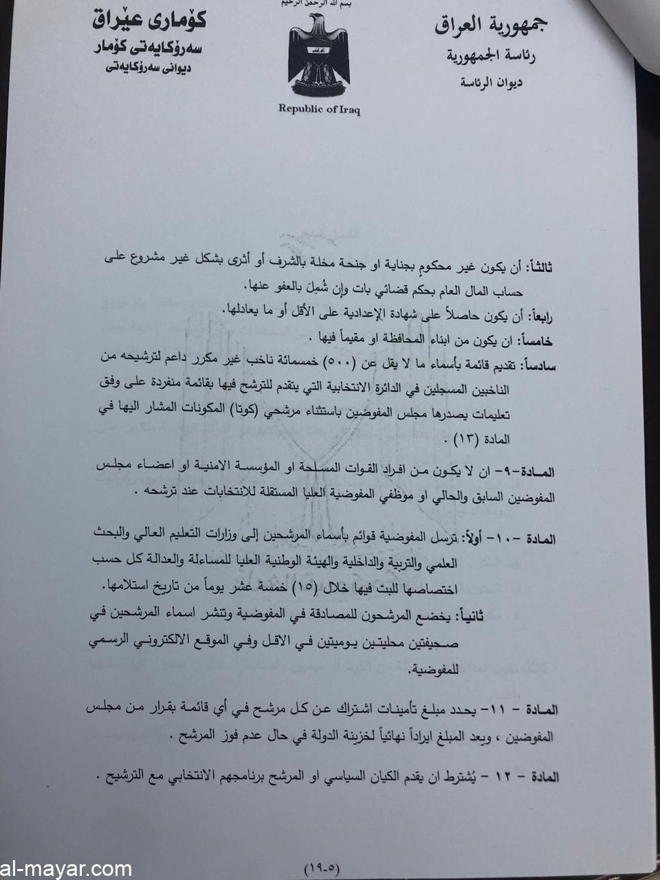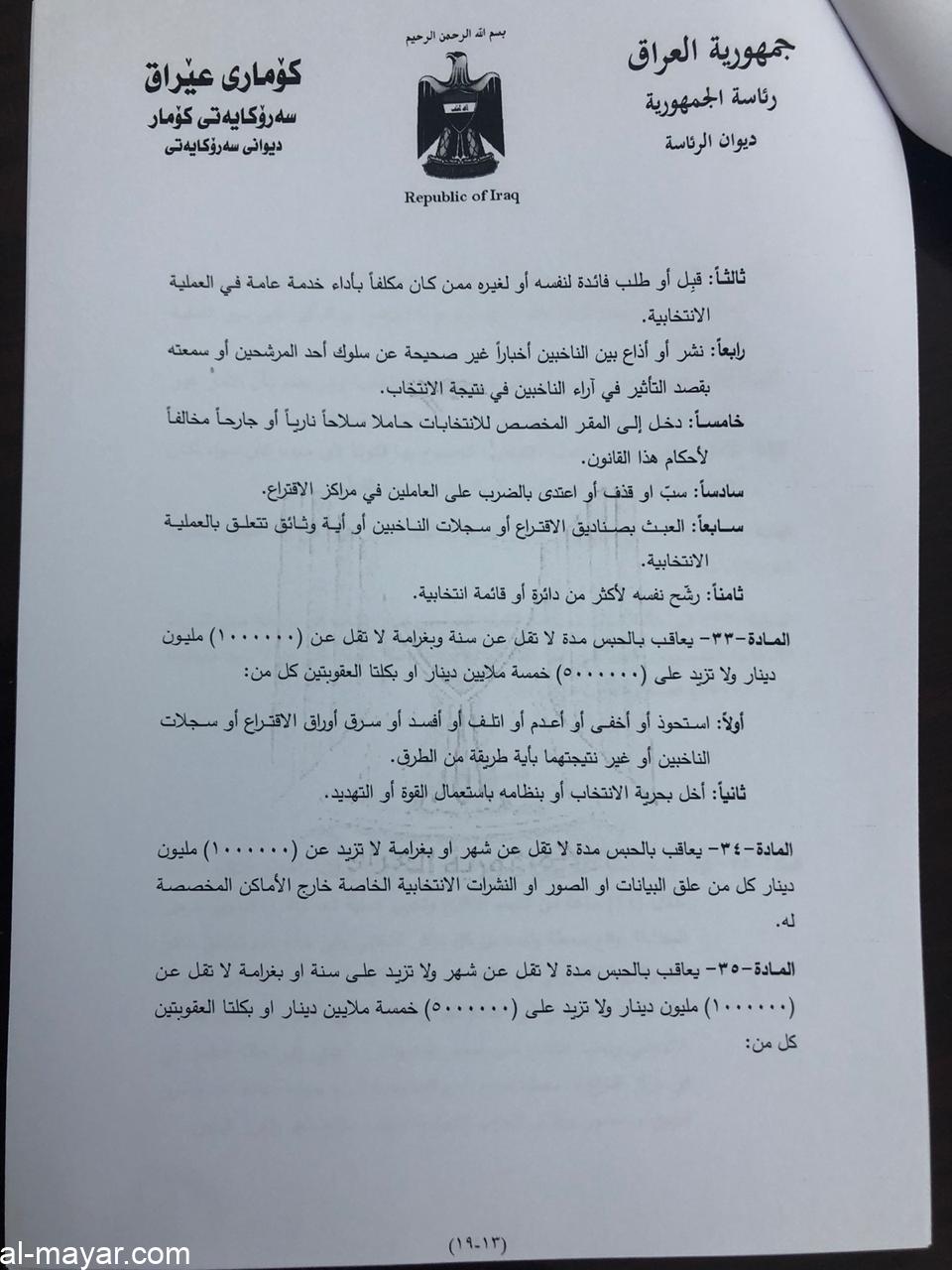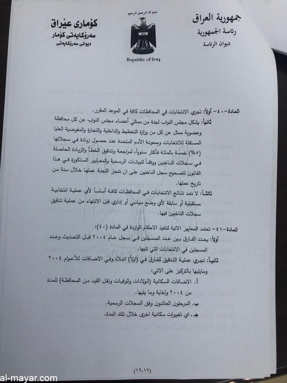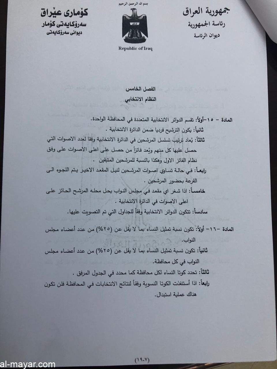 صادق رئيس الجمهورية الدكتور برهم صالح، اليوم الخميس، على قانون الانتخابات.