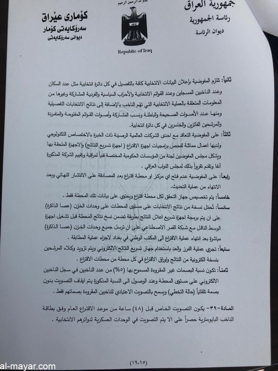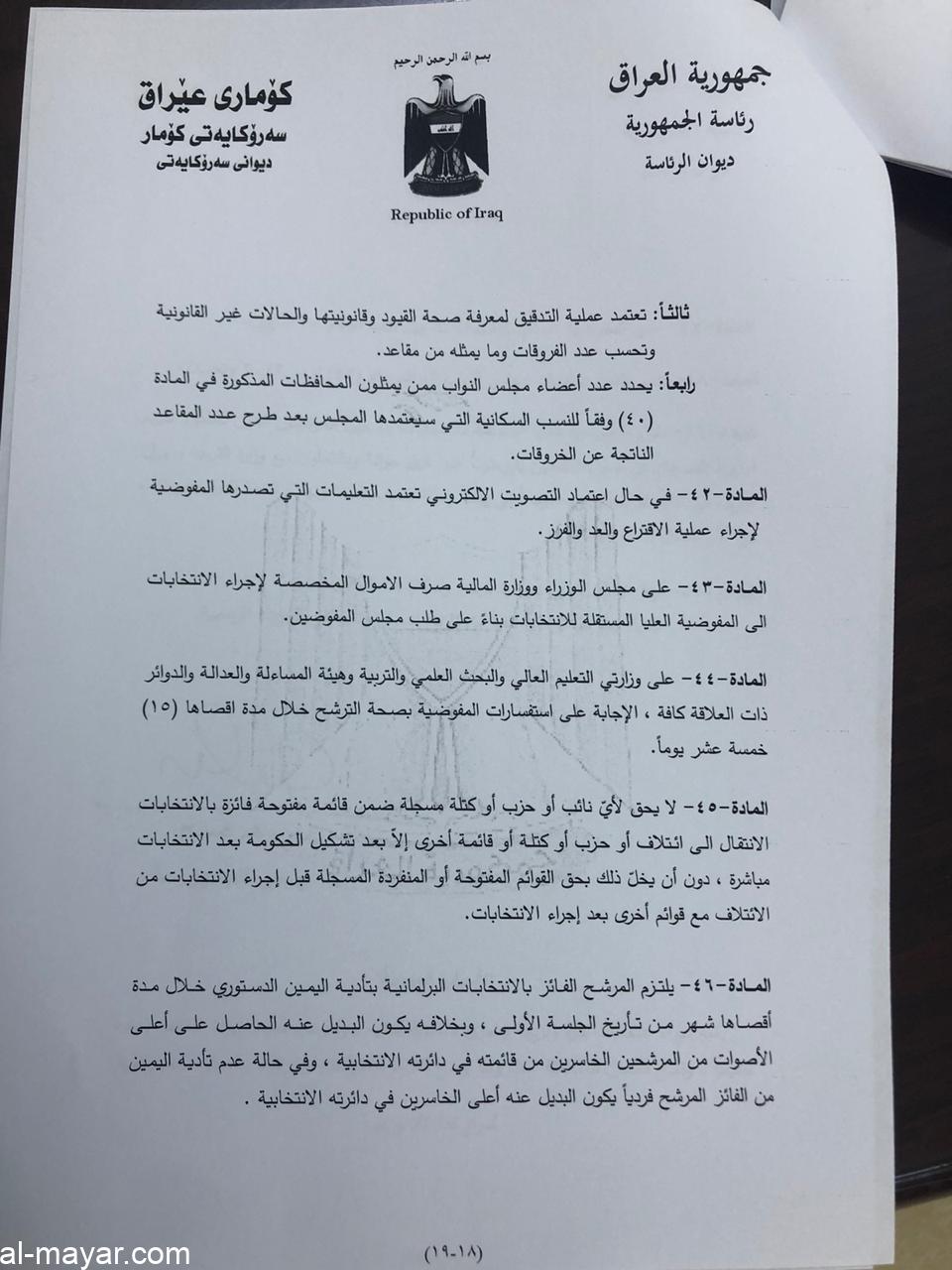 يذكر ان مجلس النواب، صوت في جلسته المنعقدة يوم السبت الموافق 24/10 على الدوائر الانتخابية لـ16 محافظة فيما اجل التصويت على محافظة كركوك ونينوى.